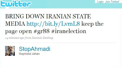 Wonkette points to twitters by Rep. Pete Hoekstra and Rep. John Culberson that recognize their common cause with the Iranians and their fight against their facist oppressors or the Democrats or, you know, whatever.